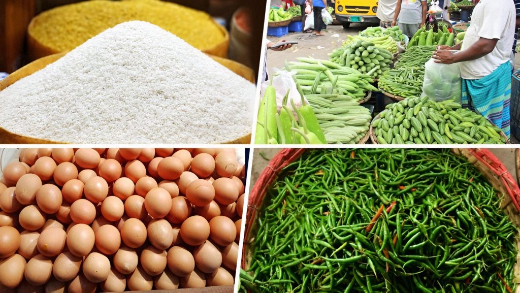 ডিমের বাজারে দেখা গেছে, এক হালি ডিম ৫৫ টাকায় বিক্রি হচ্ছে, যা আগের সপ্তাহে ছিল ৪৫ টাকা। আর তিন সপ্তাহ আগে ছিল ৪০ টাকা।