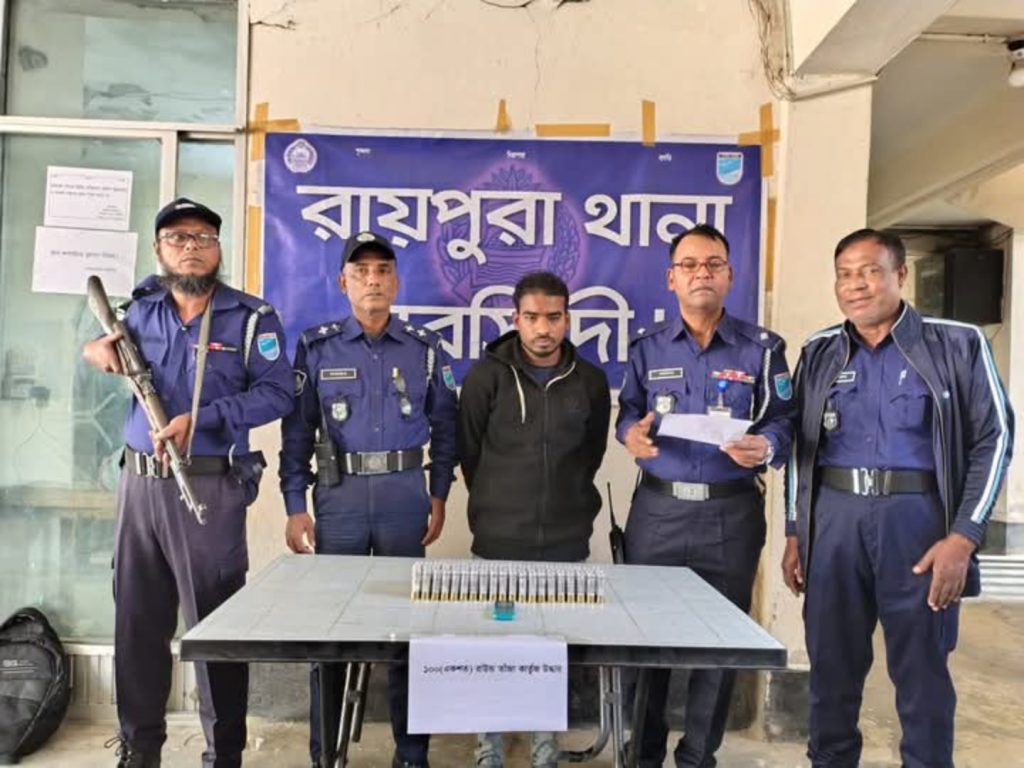 ১শ রাউন্ড গুলিসহ রায়পুরাতে ১ যুবক গ্রেপ্তার