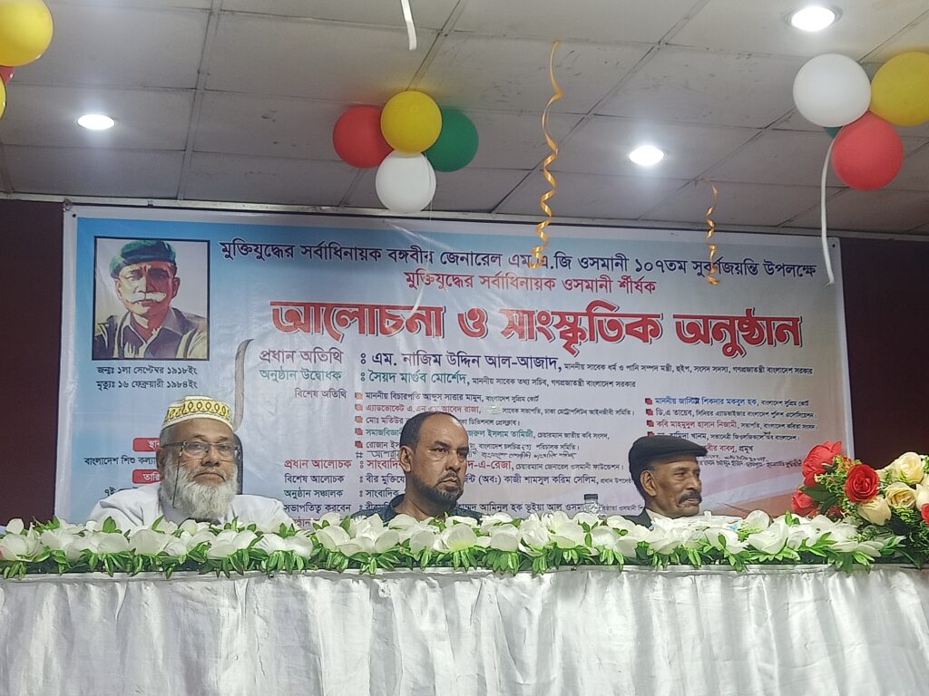 আজ রবিবার (৭ সেপ্টেম্বর) বিকাল ৫টায় শুরু হওয়া এ অনুষ্ঠানটি আয়োজন করেন ওসমানী শিল্প গোষ্ঠী সংগঠনের সভানেত্রী সাংবাদিক সালমা আক্তার লিজার। অনুষ্ঠানে মুক্তিযুদ্ধের ইতিহাস ও জেনারেল ওসমানীর জীবনাদর্শ নিয়ে আলোচনা করেন বিভিন্ন খ্যাতিমান ব্যক্তিত্ব।