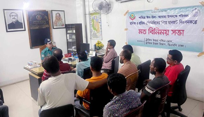 আসন্ন পবিত্র ঈদ-উল-আযহা ২০২৪ উপলক্ষে ১০-০৬-২০২৪ খ্রি. ট্রাফিক উত্তরা পশ্চিম জোন অফিসে মো: ফেরদাউস হোসেন সহকারী পুলিশ কমিশনার ট্রাফিক উত্তরা পশ্চিম জোন ট্রাফিক উত্তরা বিভাগ এর নেতৃত্বে বাস মালিক সমিতির আব্দুল্লাহপুর শাখার সাধারণ সম্পাদক জনাব মোঃ নূরুল ইসলাম (নূরু) এবং দপ্তর সম্পাদক জনাব তৌহিদুল ইসলাম (টুকন)সহ শ্রমিক সমিতির কতিপয় ব্যক্তিবর্গদের নিয়ে ট্রাফিক উত্তরা বিভাগের সম্মানিত উপ পুলিশ কমিশনার জনাব নাবিদ কামাল শৈবাল পিপিএম-সেবা (অতিরিক্ত উপ-পুলিশ মহাপরিদর্শক) এর নির্দেশে ও অতিরিক্ত উপ-পুলিশ কমিশনার মোঃ কামরুজ্জামান পিপিএম-সেবা স্যারের দিকনির্দেশনায় একটি ট্রাফিক সচেতনতামূলক মতবিনিময় সভার আয়োজন করা হয়।