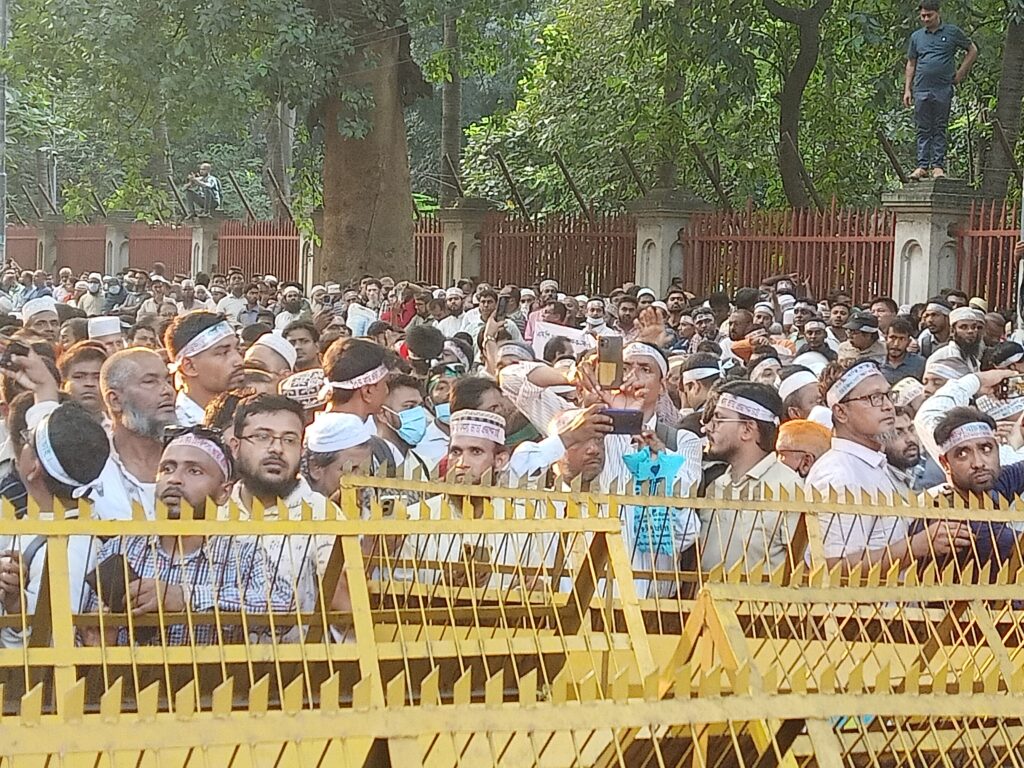 “যৌক্তিক আন্দোলন মেনে নাও”, “২০% বাড়িভাড়া দিতে হবে”, “ভাতা দাবি নয়, অধিকার”, “বৈষম্যের বাংলায় ঠাঁই নাই” এমন স্লোগানে তারা তাদের দাবি জানান।