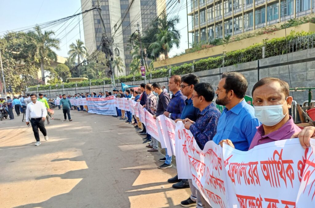 রাষ্ট্রায়ত্ত বাণিজ্যিক ব্যাংক পদোন্নতি বৈষম্য নিরসন ঐক্য পরিষদ’-এর উদ্যোগ মানববন্ধন