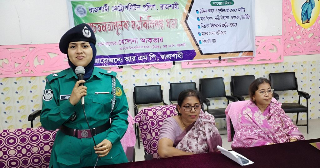 রাজশাহী মেট্রোপলিটন পুলিশের উদ্যোগে হেলেনা আকতারের (অতিরিক্ত উপ-পুলিশ কমিশনার, ট্রাফিক) নেতৃত্বে বিভিন্ন স্কুলের কিশোর কিশোরীদের নিয়ে সচেতনমূলক মতবিনিময় সভা অনুষ্ঠিত হয়।