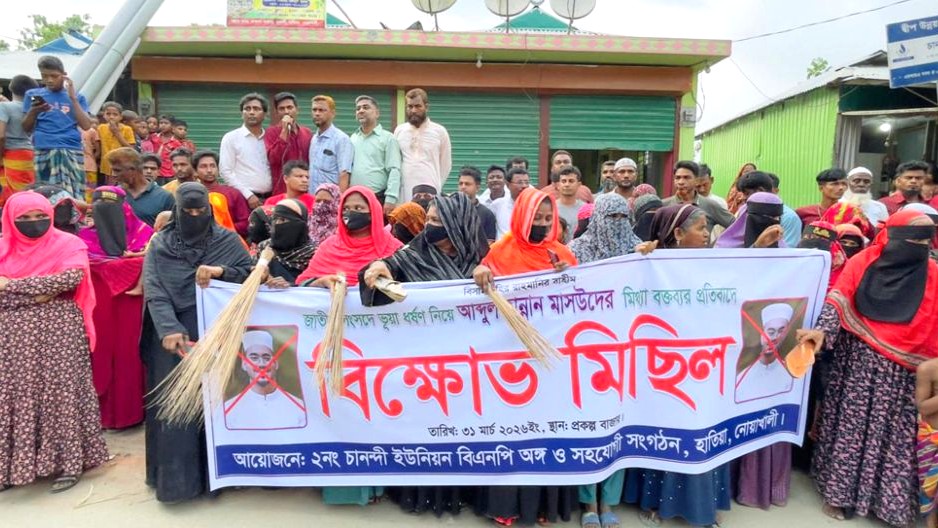 জাতীয় সংসদে দেওয়া এক বক্তব্যকে কেন্দ্র করে নোয়াখালীর হাতিয়া উপজেলায় স্থানীয়দের মধ্যে ব্যাপক প্রতিক্রিয়া দেখা গেছে। ওই বক্তব্যে ভুয়া ধর্ষণের প্রসঙ্গ তোলা এবং একটি রাজনৈতিক দলকে নিয়ে আপত্তিকর মন্তব্যের অভিযোগ তুলে সংসদ সদস্য আব্দুল হান্নান মাসউদের বিরুদ্ধে বিক্ষোভ ও ঝাড়ু মিছিল অনুষ্ঠিত হয়েছে।