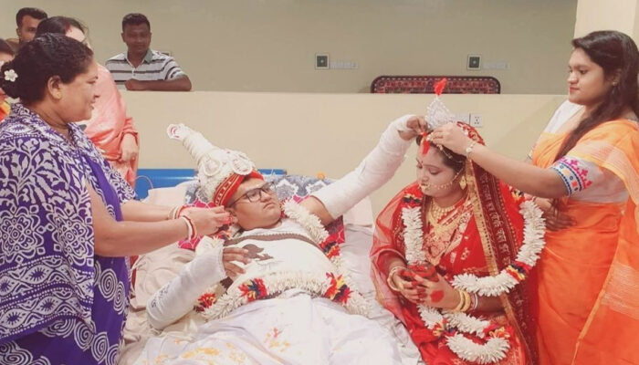 হাসপাতালেই সাজসজ্জা ও আচার, হাসপাতালের বিশেষ কক্ষে আয়োজন করা হয় ছোট্ট এক বিয়ের আসর। বর শারীরিক কষ্টে থাকলেও নির্ধারিত সময়ে সকল নিয়ম মেনে সম্পন্ন হয় বিবাহ। দুই পরিবারের সদস্য, ঘনিষ্ঠ আত্মীয়স্বজন এবং হাসপাতালের কয়েকজন কর্মী উপস্থিত থেকে অনুষ্ঠানকে স্মরণীয় করে তোলেন। কক্ষটিকে সামান্য সাজসজ্জা দিয়ে নবদম্পতির জন্য তৈরি করা হয় ভিন্নধর্মী পরিবেশ।