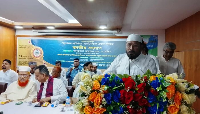 Thank you for reading this post, don't forget to subscribe!অনুষ্ঠানে প্রধান অতিথি হিসেবে উপস্থিত ছিলেন বাংলাদেশ ইসলামী ফ্রন্টের চেয়ারম্যান জননেতা আল্লামা এম. এ. মতিন। তিনি বলেন, দেশের সার্বিক উন্নয়ন ও স্থিতিশীলতা রক্ষার জন্য ন্যায়ভিত্তিক সুশাসন প্রতিষ্ঠা এখন সময়ের দাবি। রাজনৈতিক বিভাজনের কারণে দেশ ও জনগণের ক্ষতি হচ্ছে, যা থেকে বেরিয়ে এসে দলমত নির্বিশেষে সবার ঐক্যবদ্ধ প্রচেষ্টা প্রয়োজন। তিনি আরও বলেন, ইসলাম শান্তি ও ন্যায়ের ধর্ম এর মূল শিক্ষাকে ধারণ করে যদি রাজনীতি পরিচালিত হয়, তবে দুর্নীতি, অন্যায় ও স্বজনপ্রীতির অবসান ঘটানো সম্ভব।