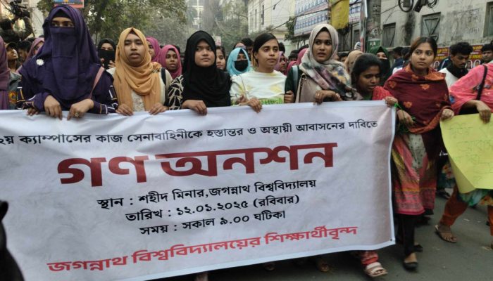 তিন দফা দাবিতে জগন্নাথ বিশ্ববিদ্যালয়ে অনসনরত শিক্ষার্থীরা সচিবলায় অভিমুখে যাত্রা শুরু করেছে। অনসনরত শিক্ষার্থীদের সাথে বিশ্ববিদ্যালয়ের ছয় শতাধিক সাধারন শিক্ষার্থীরা যাত্রা শুরু করেছে।