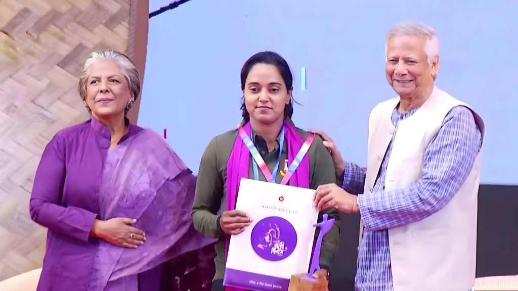Thank you for reading this post, don't forget to subscribe!শনিবার সকালে রাজধানীর ওসমানী স্মৃতি মিলনায়তনে আয়োজিত এক অনুষ্ঠানে প্রধান উপদেষ্টা এই সম্মাননা তুলে দেন।