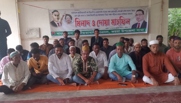 কয়রায় বিএনপি’র চেয়ারপার্সন সাবেক প্রধানমন্ত্রী খালেদা জিয়ার রোগ মুক্তি কামনা ও বৈষম্য বিরোধী ছাত্র আন্দোলনে শহীদদের রুহের মাগফিরাত কামনা করে মিলাদ ও দোয়া মাহফিল অনুষ্ঠিত হয়েছে।