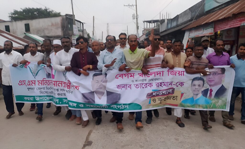 খুলনার কয়রা উপজেলায় বিএনপির নেতাকর্মীদের মাঝে উচ্ছ্বাস ছড়িয়েছে। খুলনা জেলা বিএনপির সাবেক সদস্য সচিব মনিরুল হাসান বাপ্পীকে পুনরায় জেলা সদস্য সচিব পদে মনোনয়ন দেওয়ায় কেন্দ্রীয় নেতৃত্বকে ধন্যবাদ জানিয়ে উপজেলা বিএনপি ও সহযোগী সংগঠনগুলো আনন্দ মিছিল বের করে। এতে অংশ নেন হাজারো নেতাকর্মী, যা স্থানীয় রাজনৈতিক মহলে নতুন প্রাণের সঞ্চার করেছে।