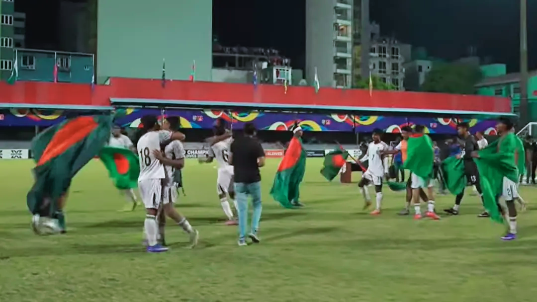 টাইব্রেকারে স্নায়ুচাপ সামলে অসাধারণ পারফরম্যান্স দেখায় বাংলাদেশ। শটগুলোতে নির্ভুলতা এবং গোলরক্ষকের দৃঢ়তায় শেষ পর্যন্ত ৪-৩ ব্যবধানে জয় নিশ্চিত করে তারা। এই জয়ের মধ্য দিয়ে দক্ষিণ এশিয়ার বয়সভিত্তিক ফুটবলে নিজেদের শক্ত অবস্থান আবারও প্রমাণ করল বাংলাদেশের তরুণ দল।