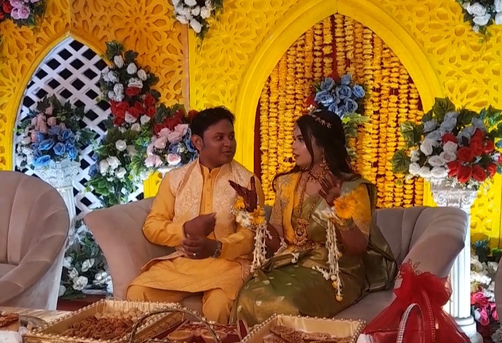 কমিশনার কাজলের কন্যা পুষ্প ও বর সুমনের গায়ে হলুদের জমকালো আয়োজন